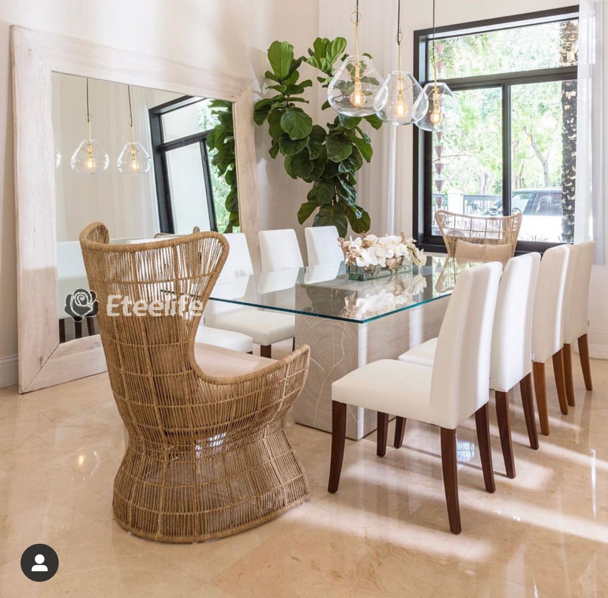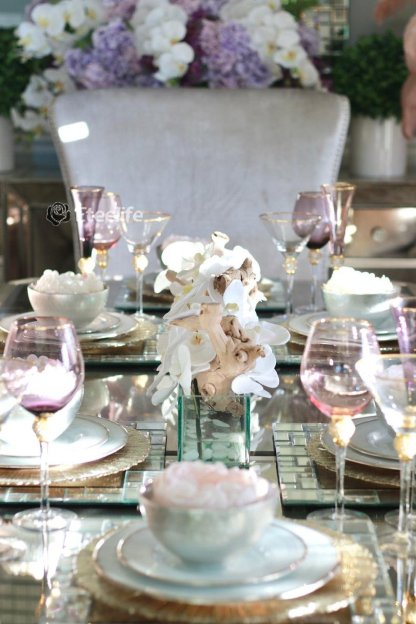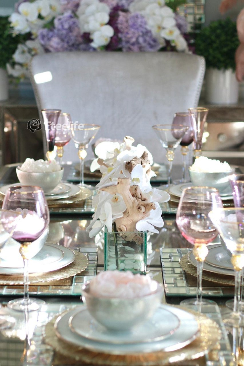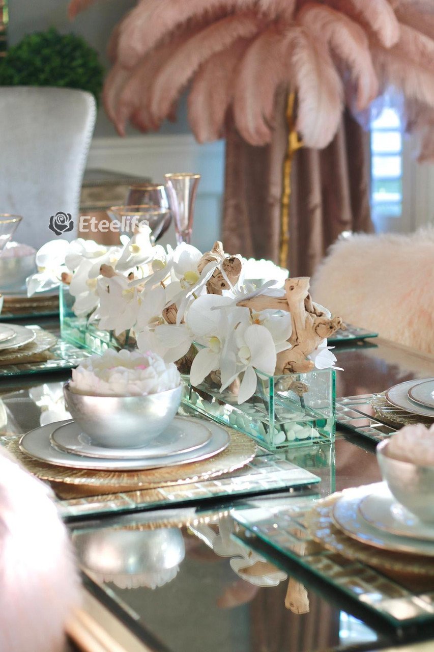 24′′ Casa Moderna Glass Plate Planter with white orchids