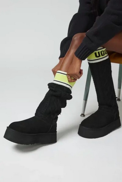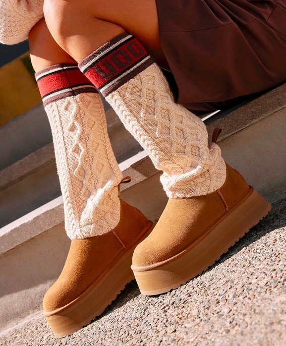 アグブーツとケーブルニットが融合したキュートなプラットフォームブーツ♪