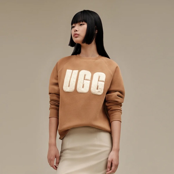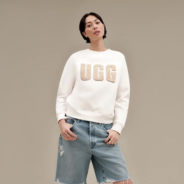 クラシックなフィット感で、襟、袖口、裾にはリブニットを使用しています。ソフトなUGGグラフィックロゴを配し、カラーと質感のコントラストで仕上げました。大胆かつ何にでも合わせやすいスタイルです。
